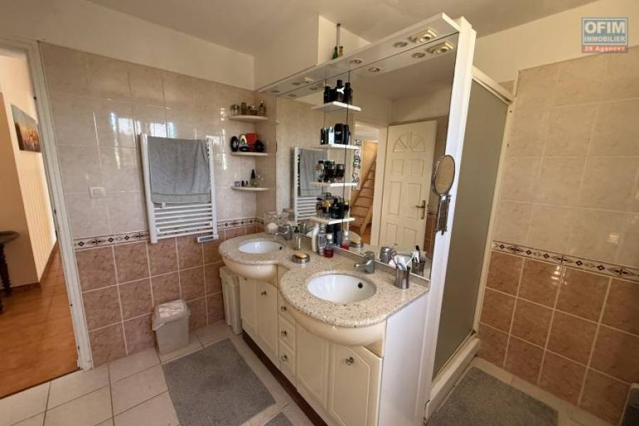 L'agence OFIM d'Etang Salé Les Hauts vous présente à la vente cette magnifique propriété F5/6 avec garages et piscine, idéalement située en hyper centre d'Etang Salé Les Hauts, en impasse, un véritable havre de paix, parfait pour une grande famille, le tout implanté sur un terrain plat de 1515 m² sans vis à vis, il est possible de construire d'autres habitations sur le terrain. Caractéristiques du bien : - Maison de Type F5/6 climatisée en R+1 de 135 m² habitables - Garages de 30 m² (vélos et atelier doubles porte basculante) et 25 m² voitures avec portes basculantes - Varangues : 15,30 m² au Rez-de-Chaussée et 7,60 m² fermée à l'étage - Terrasses de 48 m² devant le séjour et 42 m² devant la maison - Buanderie/atelier créatif de 10 m² - Atelier bricolage de 15,30 m² (porte deux battants) - Terrain de 1515 m² en zone UC du PLU soit (9 m au faitage), plat, arboré et fleuri - Piscine de 43 m3 et de (7,70 m x 4,6 m et 2,10 m profondeur grand bassin) et sa plage de 32,30 m² - Cuisine d'été couverte et terrasse couverte de 10 m² Composition de la maison : Au Rez-de-Chaussée : - 1 chambre/bureau de 8,7 m² - 1 séjour spacieux de 25,36 m² - 1 grand salon/espace repos de 24 m² - 1 cuisine de 10,50 m², avec accès salon et séjour - 1 WC de 2 m² - 1 varangue de 15,30 m² À l'Étage : - 3 chambres de 14 m², 10,50 m² et 7 m². - 1 salle d'eau de 8,80 m² - 1 WC de 2 m² - 1 dressing de 5,8 m² - 1 varangue fermée de 7,60 m² (rangement, repassage) - 1 dégagement de 8,70 m² - 1 petit grenier accessible et isolé de rangement/stockage, accès direct via un escalier en bois dans la grande chambre - 1 petite mezzanine (espace enfants) Détails supplémentaires : - Places de stationnement intérieur - Portail électrique - Chauffe-eau solaire - menuiserie aluminium en double vitrage dans toute la maison. - Taxe foncière : 2423 € Commission d'agence : À la charge du vendeur. Pour plus d'informations ou pour planifier une visite, n'hésitez pas à contacter François HART (agent commercial) au [coordonnées réservées] ou par email à [coordonnées réservées] Honoraires à la charge du vendeur 8A71700, Numéro de mandat: 2324ESH Tél. commercial: [coordonnées réservées]