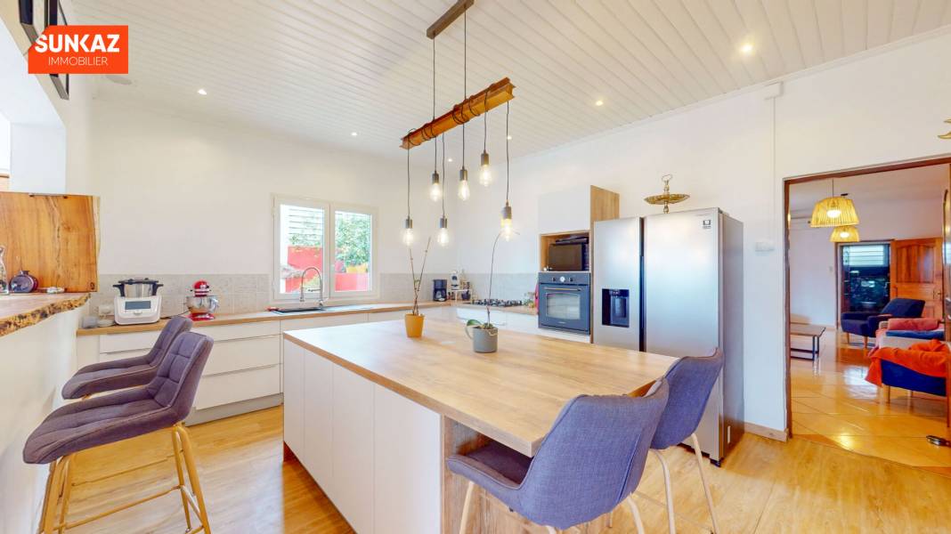 Etang salé les hauts, venez découvrir cette spacieuse maison familiale. Elle se compose d'un espace de vie avec une cuisine rénovée aménagée et équipée, d'un salon de 35m2 climatisé, et d'une vaste pièce ouverte sur la terrasse, à aménager en fonction de ses envies. La partie nuit comporte 5 chambres climatisées, de 12 à 16m2, 2 salles d'eau dont une avec baignoire et douche, un espace dressing, un cagibi et 2 WC. Terrasse en bois de plus de 130m2 avec piscine ( pompe à chaleur) , parfaite pour des instants de détente avec une vue panoramique sur le littoral. Portail automatique. Vidéo surveillance. Système audio. Combles aménageables. Cette villa, lumineuse et bénéficiant d'une vue mer , offre un cadre de vie exceptionnel dans un environnement calme et recherché. Située à 200 mètre d'altitude, vous serez au centre ville en 5mn en voiture. Visitez-la dès maintenant grâce à notre visite virtuelle 24/24h ! Les honoraires sont à la charge du vendeur. Pour plus d'informations sur les risques, consultez le site www.georisques.gouv.fr. Envie de découvrir ce bien d'exception ? Contactez vite votre agence SUNKAZ au [coordonnées réservées] pour organiser une visite !