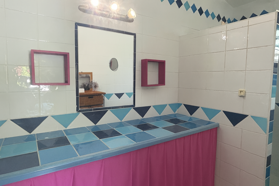 Elle se compose d’un séjour, d’une cuisine moderne, de deux chambres climatisées, d’une salle d’eau en commun avec WC ainsi que d’une chambre principale avec salle d’eau attenante et WC.