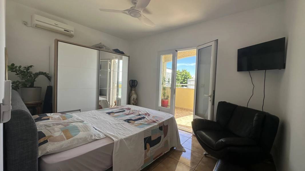 À l'étage, deux belles chambres climatisées, équipées de brasseurs d'air, chacune avec terrasse privative, offrent un cadre agréable pour se détendre.