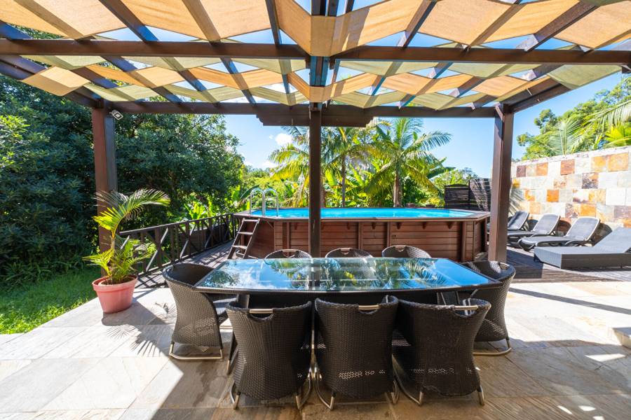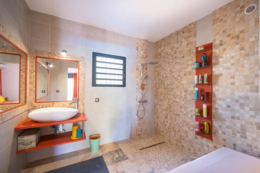 Havre de paix au Tampon ! Coup de coeur assuré ! Située au TAMPON 12ème, Guetali IMMOBILIER à le plaisir de vous présenter cette belle maison de 112 m2 habitables. Elle vous séduira par son cadre naturel et ses températures agréables, offrant un parfait équilibre entre fraîcheur et confort. Savamment conçue, la maison se présente en duplex inversé; pensé pour profiter pleinement de la vue verdoyante ! Au rez de jardin vous profiterez d'une lumineuse suite parentale, climatisée avec dressing, salle d'eau et WC indépendant. Cette magnifique chambre vous mènera sur une terrasse extérieure avec un deck de plus de 70 m² avec une piscine en bois hors sol, idéale pour vos moments de détente. A l'étage, vous rentrerez par un salon cosy avec cuisine équipée, ouverte sur une large varangue surplombant le jardin. Un dégagement lumineux distribue 2 chambres climatisées avec placards, ainsi qu'une grande salle de bains et un WC indépendant. Un cadre verdoyant, un espace de vie fonctionnel et des prestations de qualité... Cette maison a tout pour vous séduire ! Ne laissez pas passer cette belle opportunité ! Contactez-nous pour une visite ! Taxe Foncière 2024 : 2 210 euros Prix de vente: 355 000 euros frais d'agence inclus - honoraires à la charge vendeur Référence annonce : 244685 Non soumis au DPE Information d'affichage énergétique sur ce bien : DPE NS indice et GES NS indice . Les informations sur les risques auxquels ce bien est exposé sont disponibles sur le site Géorisques : www.georisques.gouv.fr. Consommation énergie primaire : Non communiquée. Consommation énergie finale : Non communiquée.